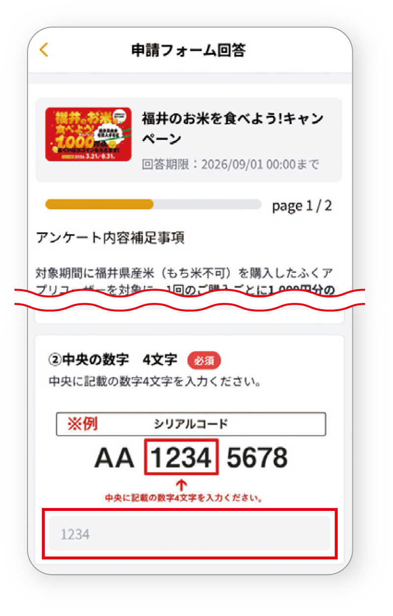 以下の「申請フォームはコチラ」ボタンもしくは、ふくアプリから申請フォームにアクセスし、シリアルコードを入力して送信してください。